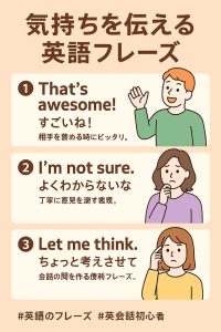 英語で気持ちを伝える時に役立つフレーズを3つ紹介します。